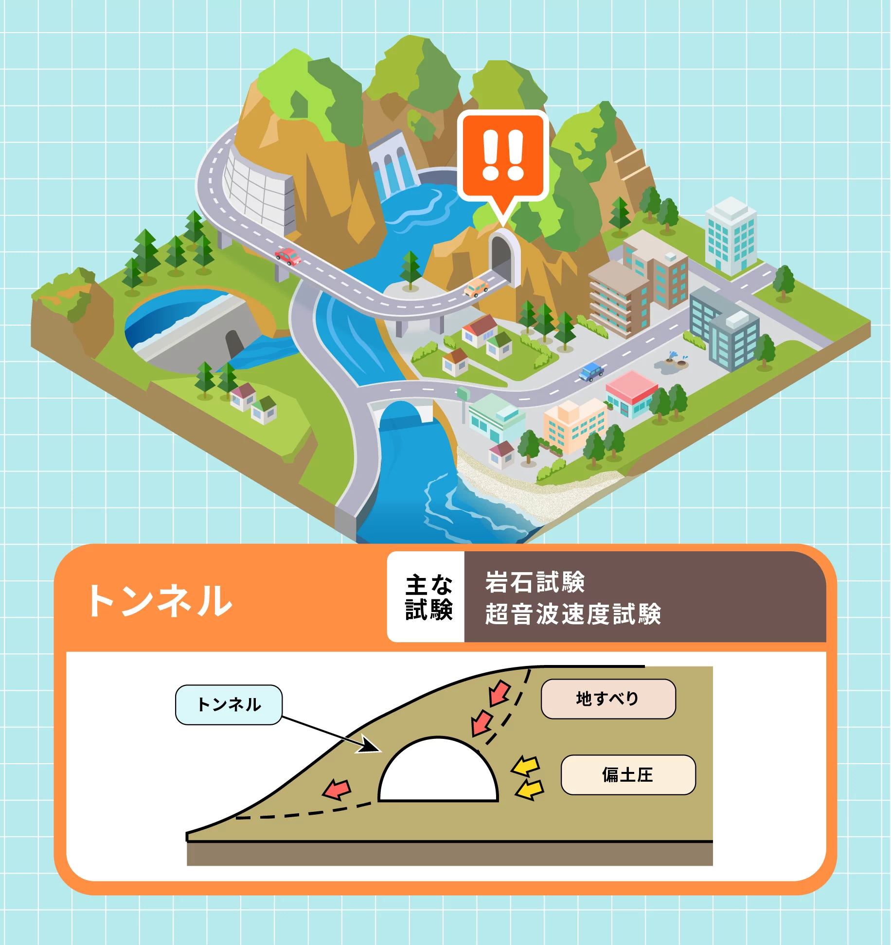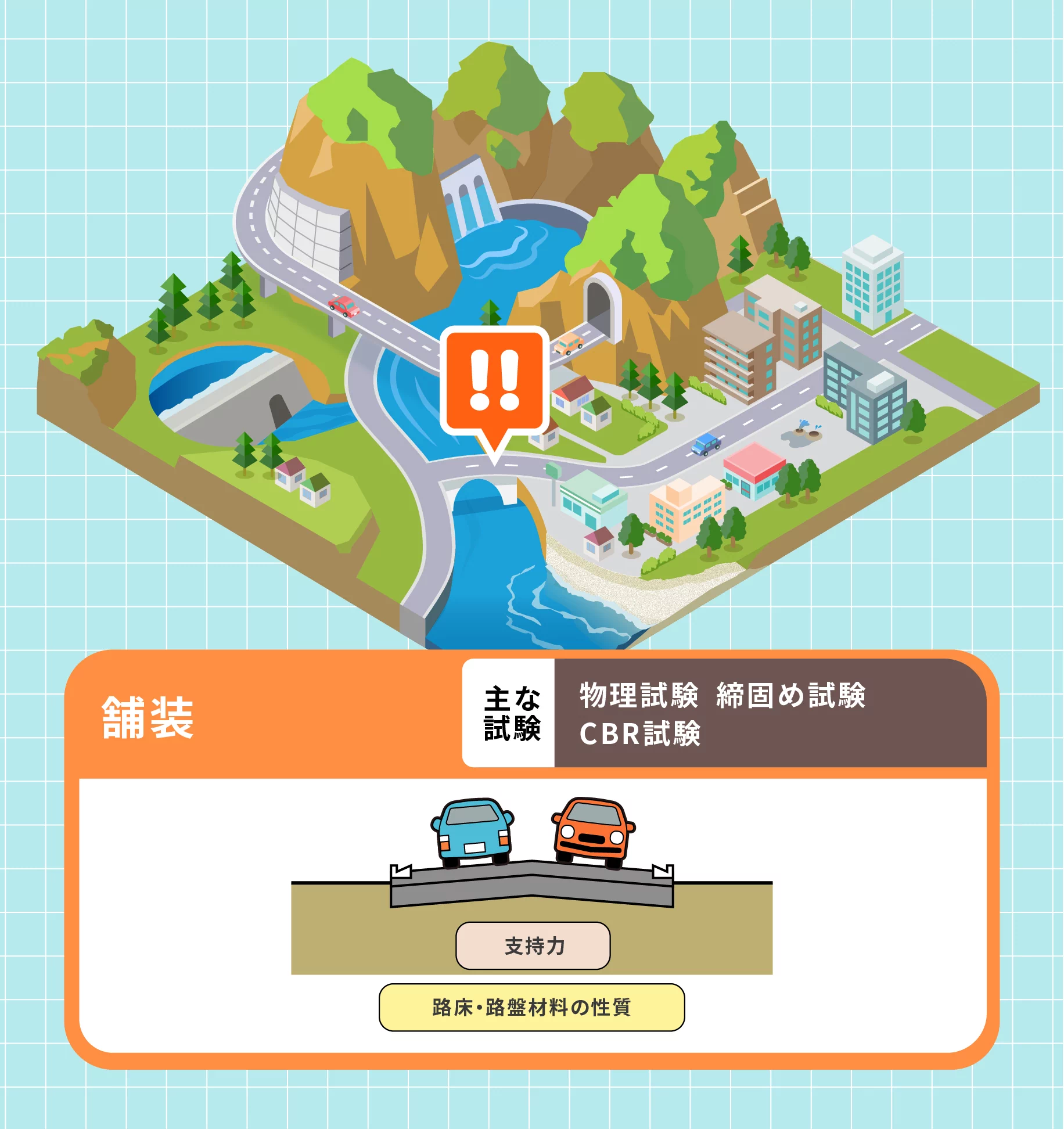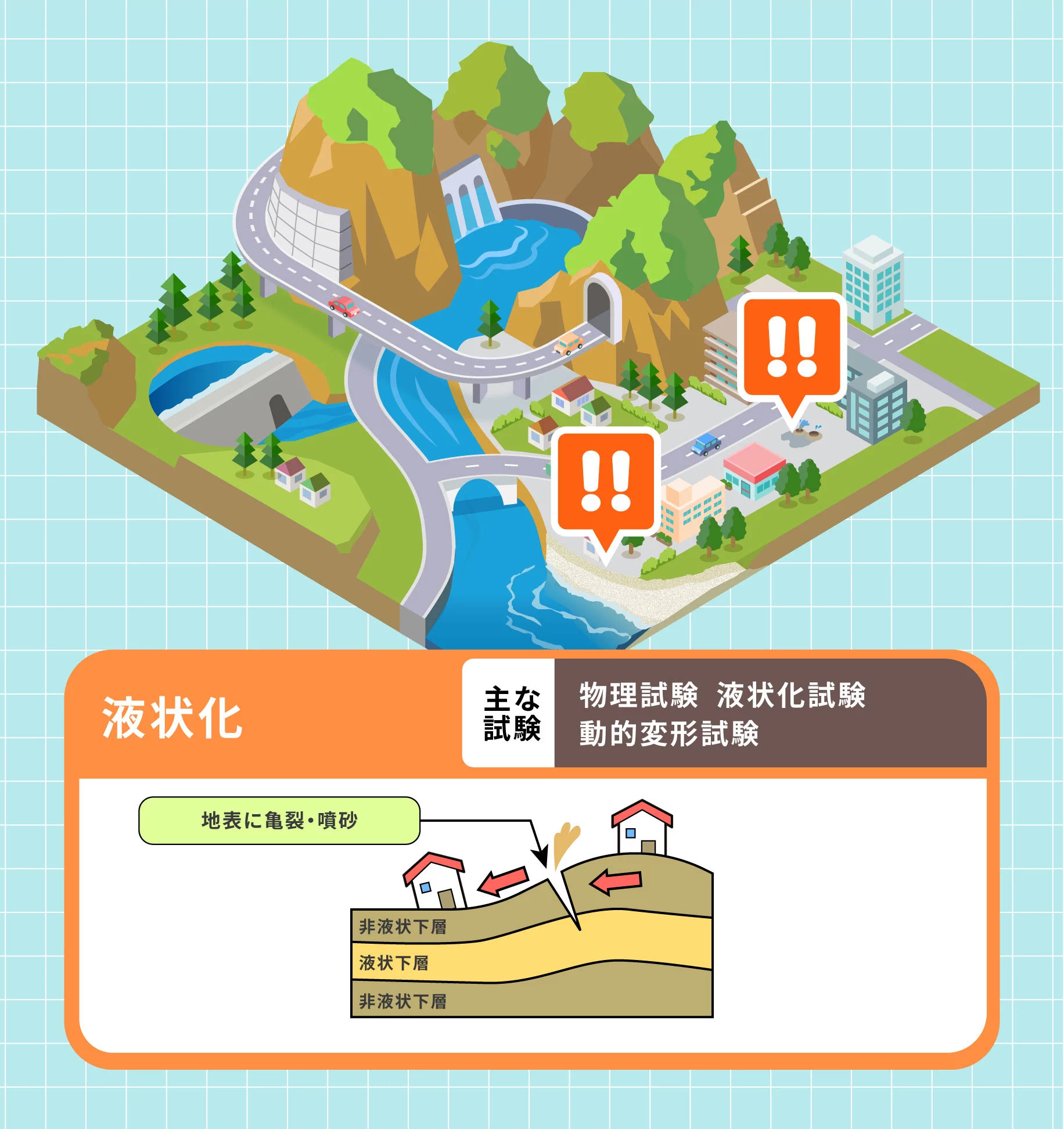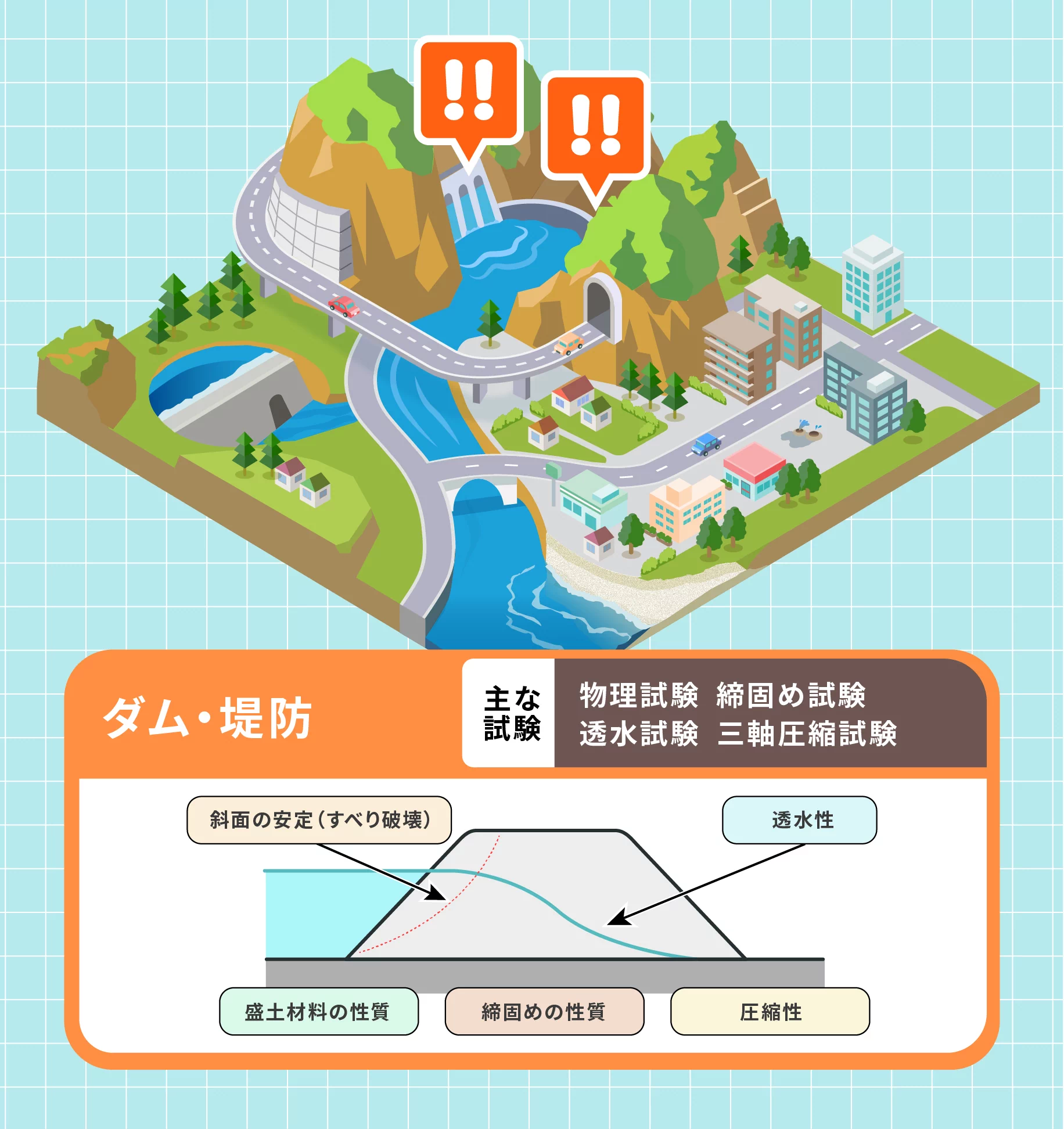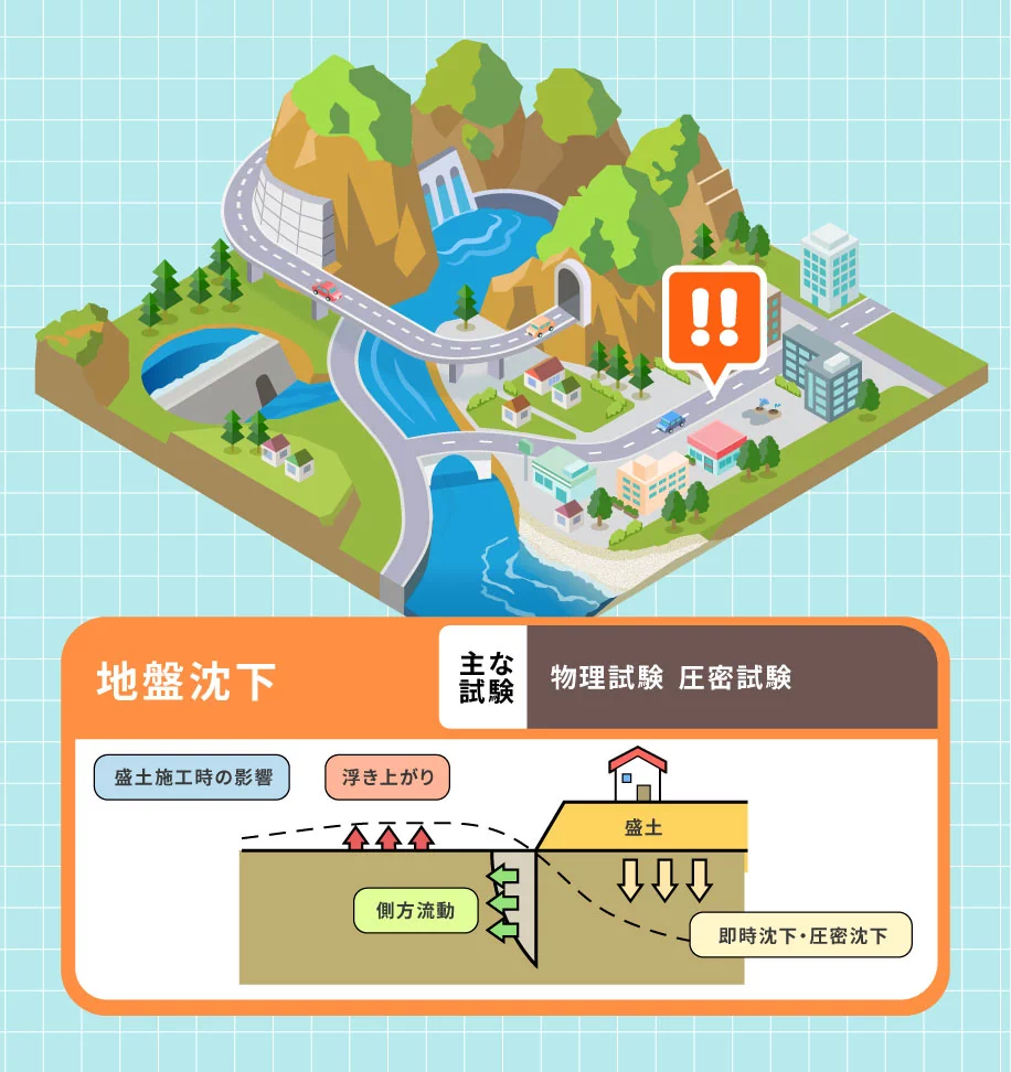 構造物や地盤は劣化や経年変化が生じます。対策の検討のために地盤材料試験が必要となる事があります。