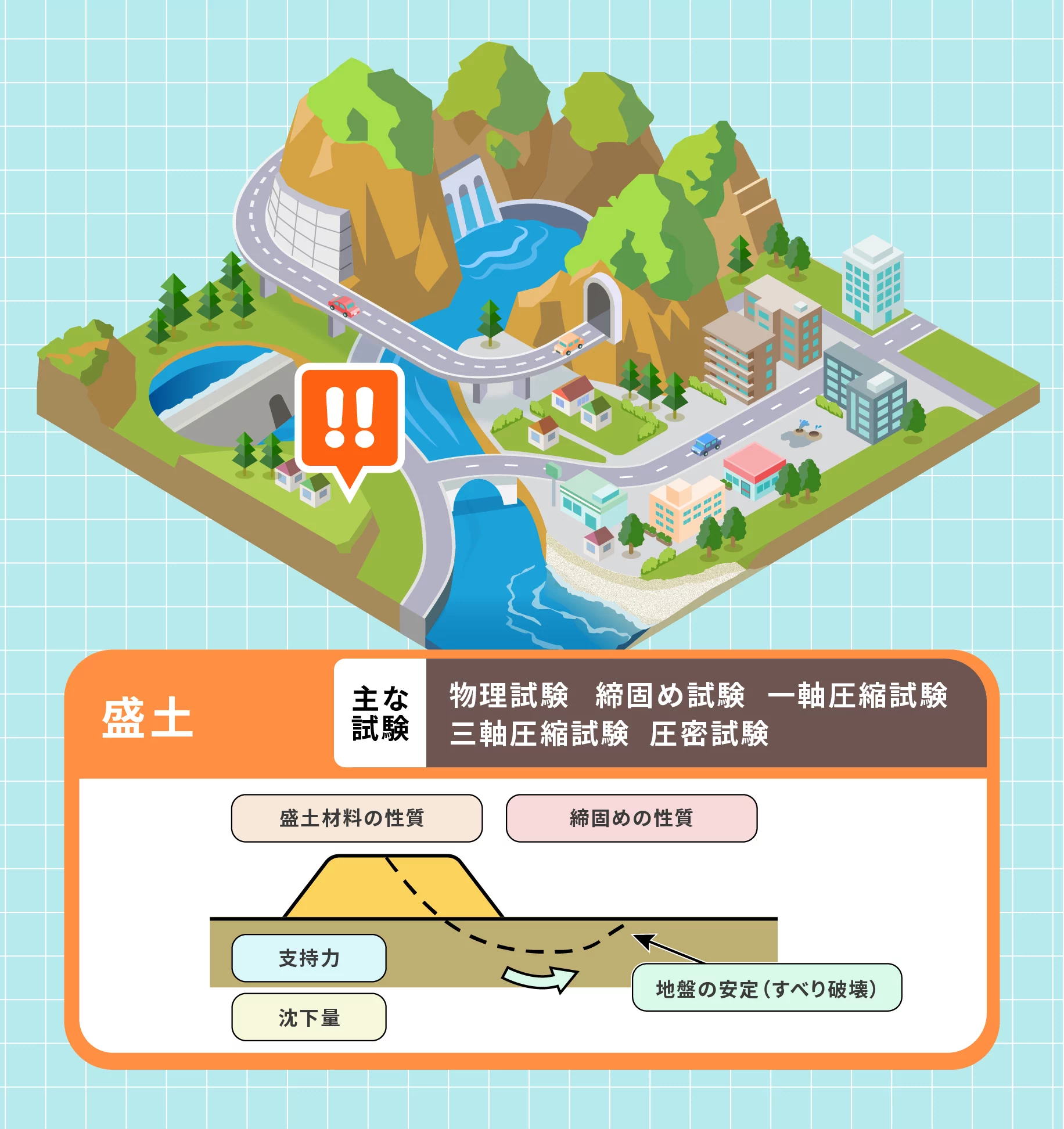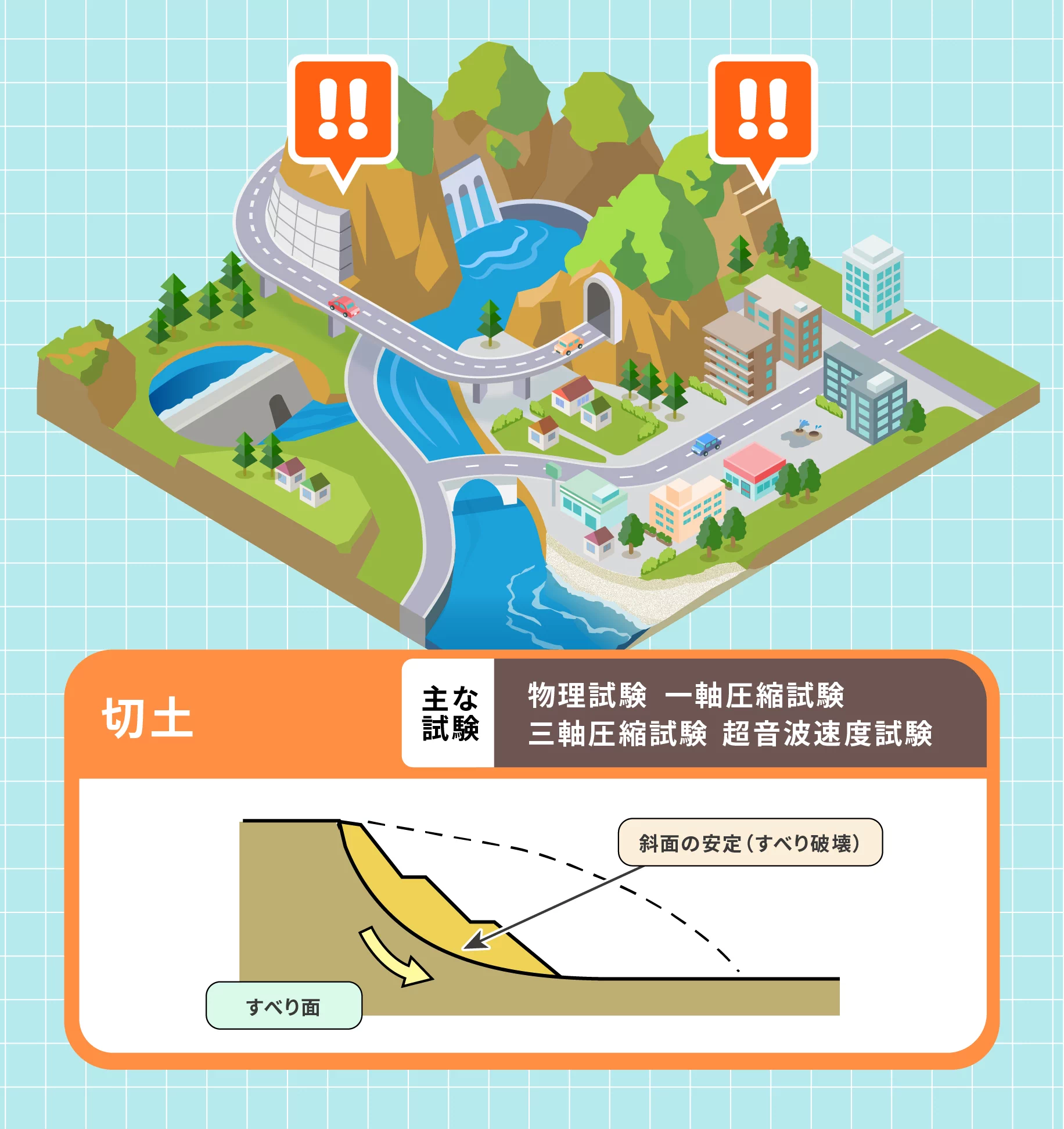 調査・設計・施工・管理、どの段階においても地盤材料試験(土質試験)が関わってきます。